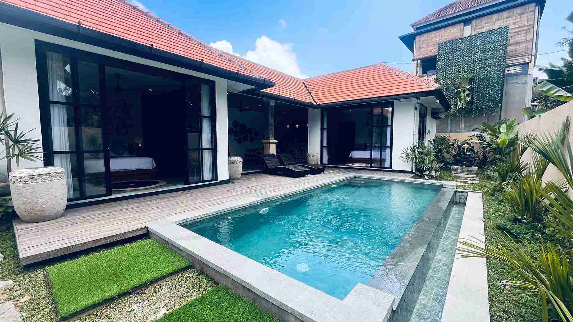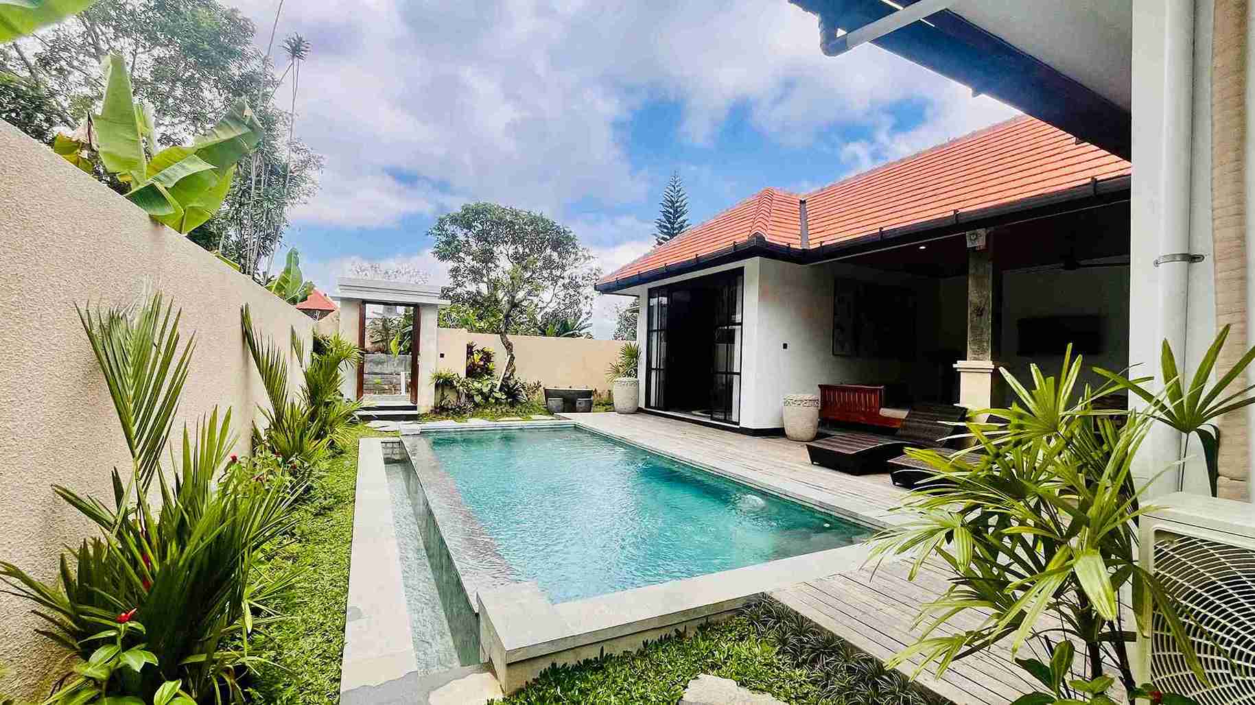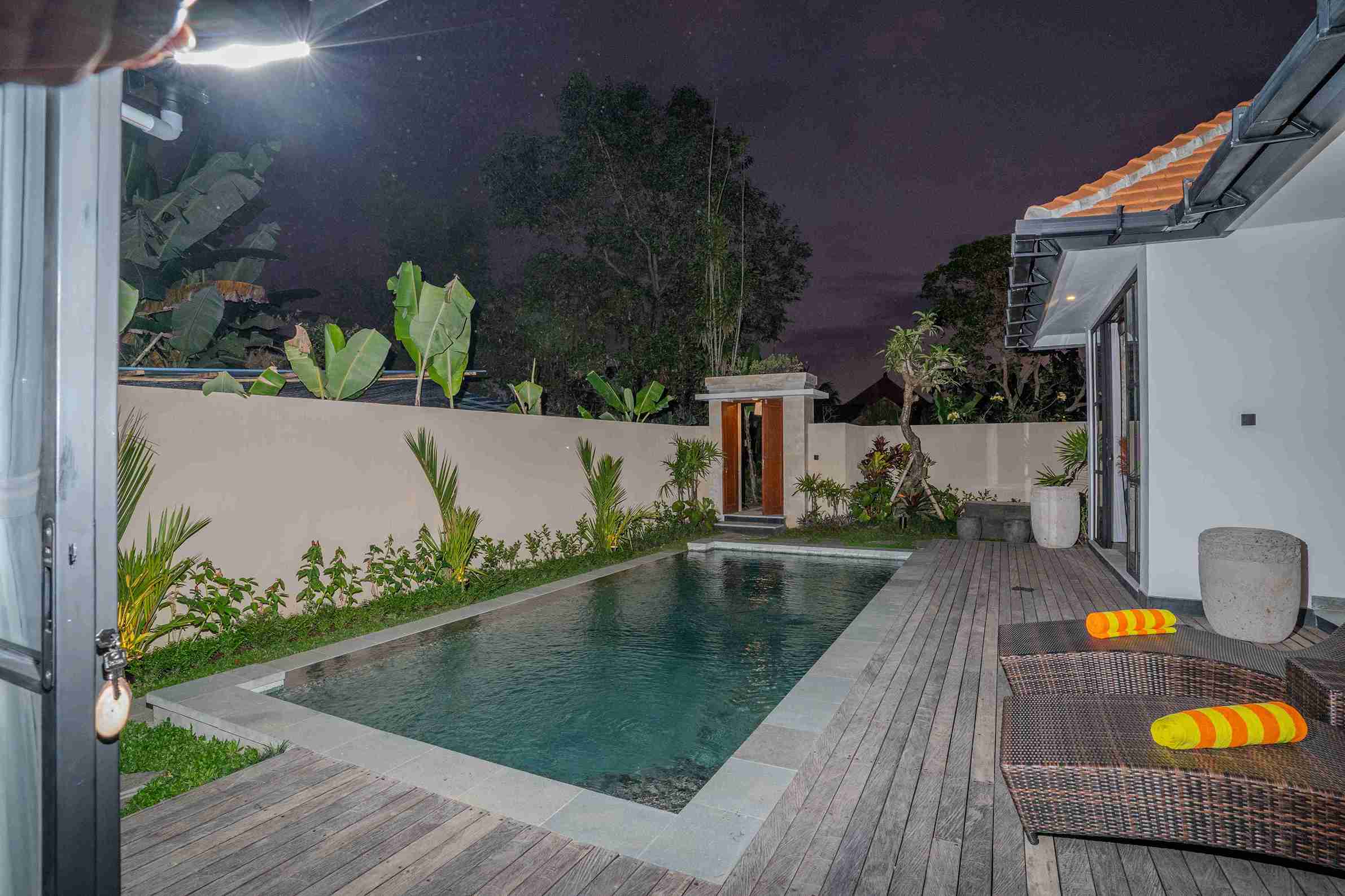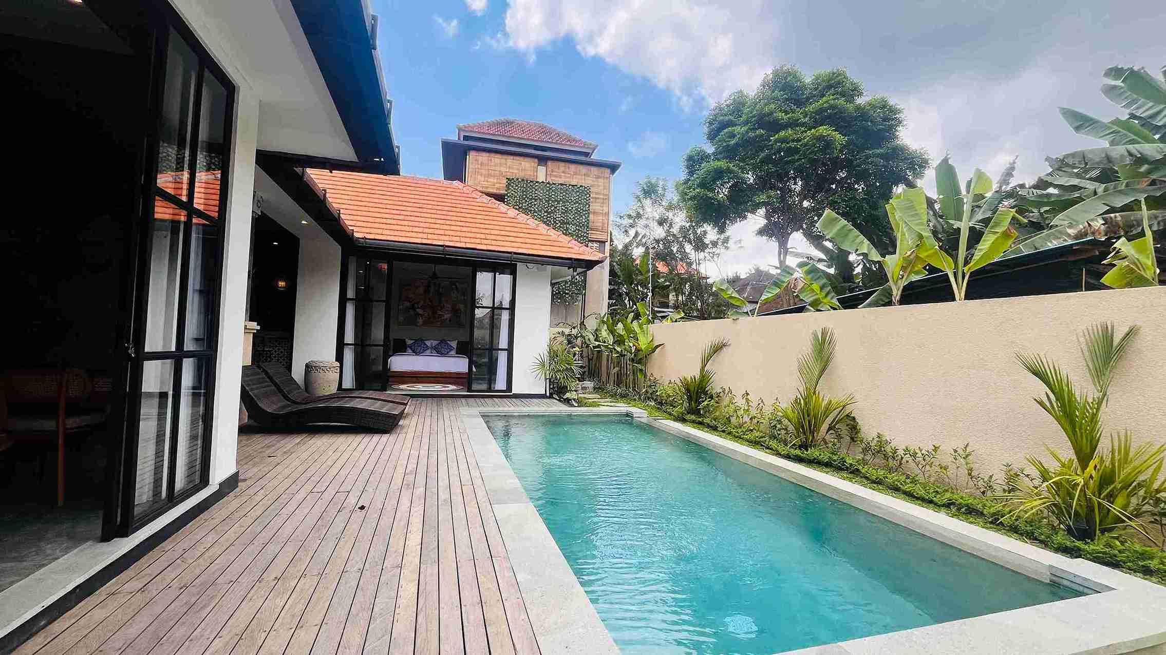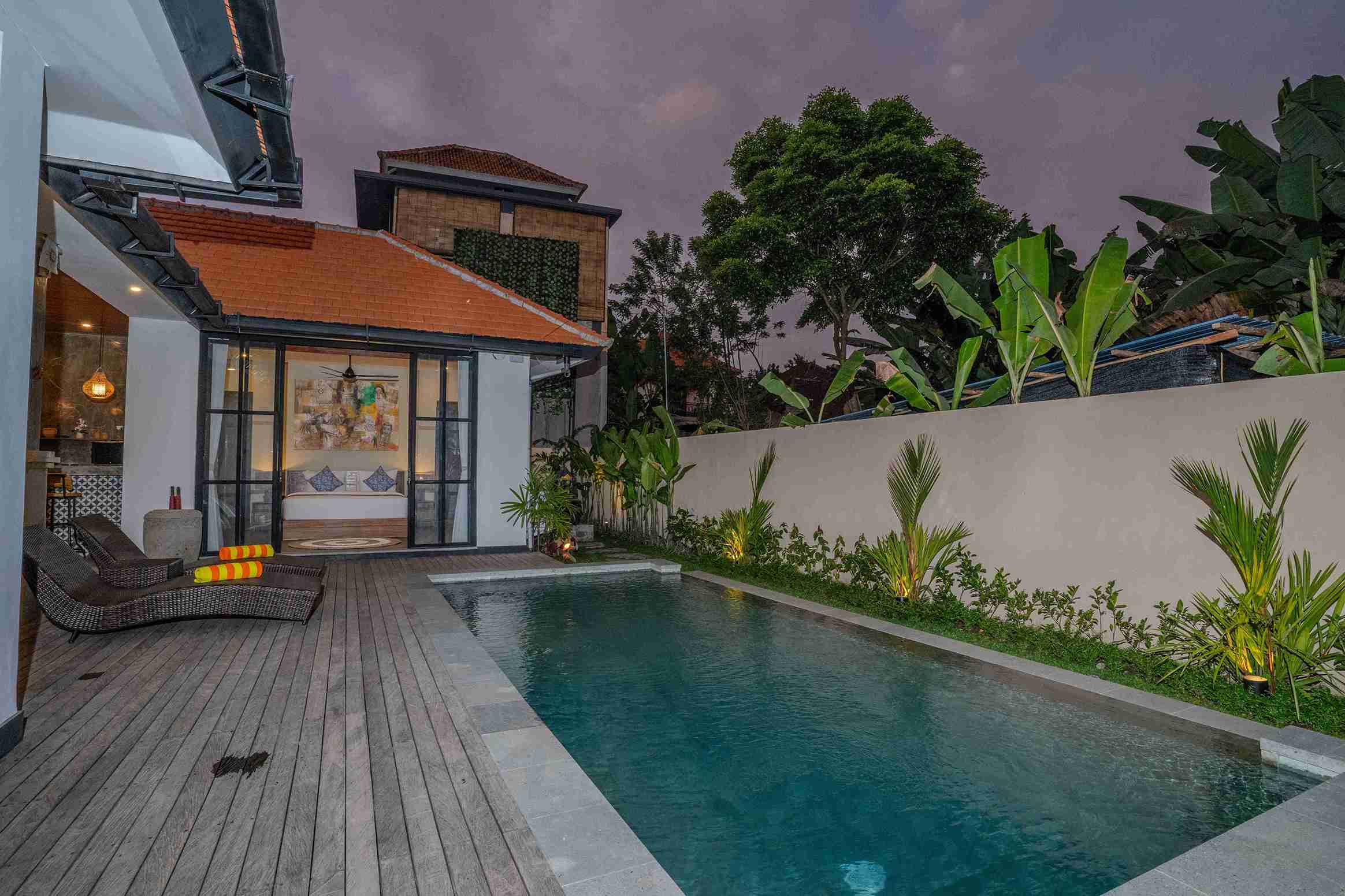 Experience the perfect blend of modern design and tropical charm at Villa Kumpi Ubud, a sleek and stylish 2-bedroom villa with a private pool, nestled in the heart of Ubud.